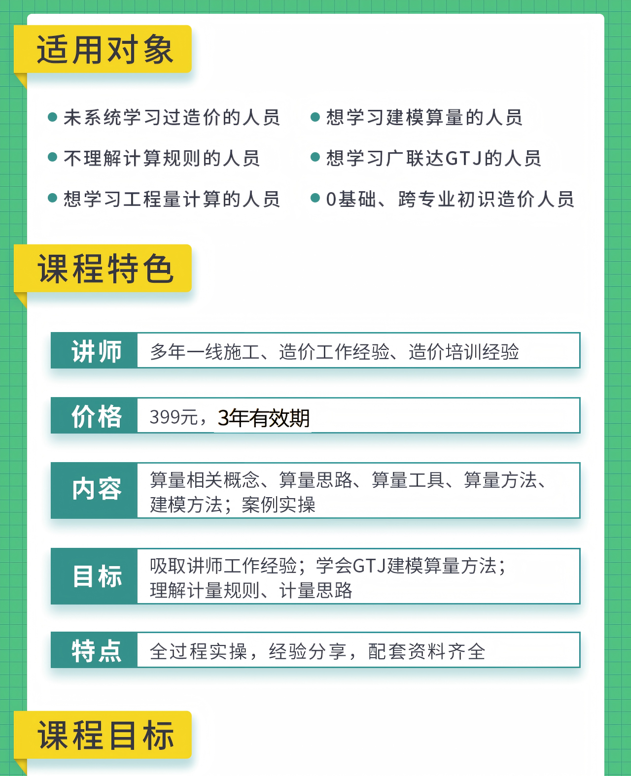 专注新人培训、建筑人能力提升,多位讲师,拥有丰富的一线造价、施工经验,造价师、建造师。